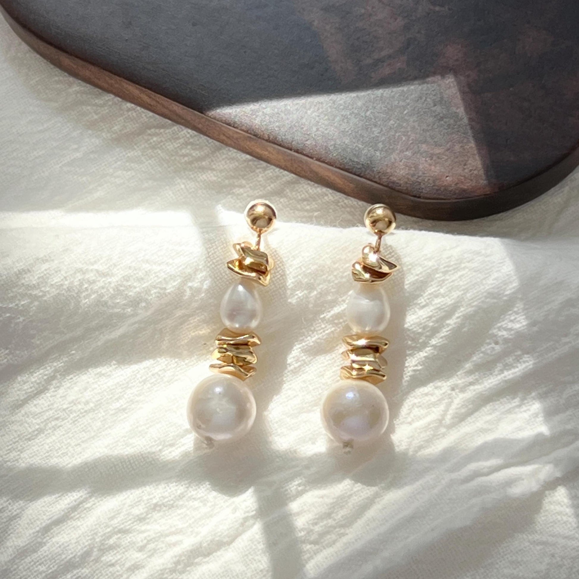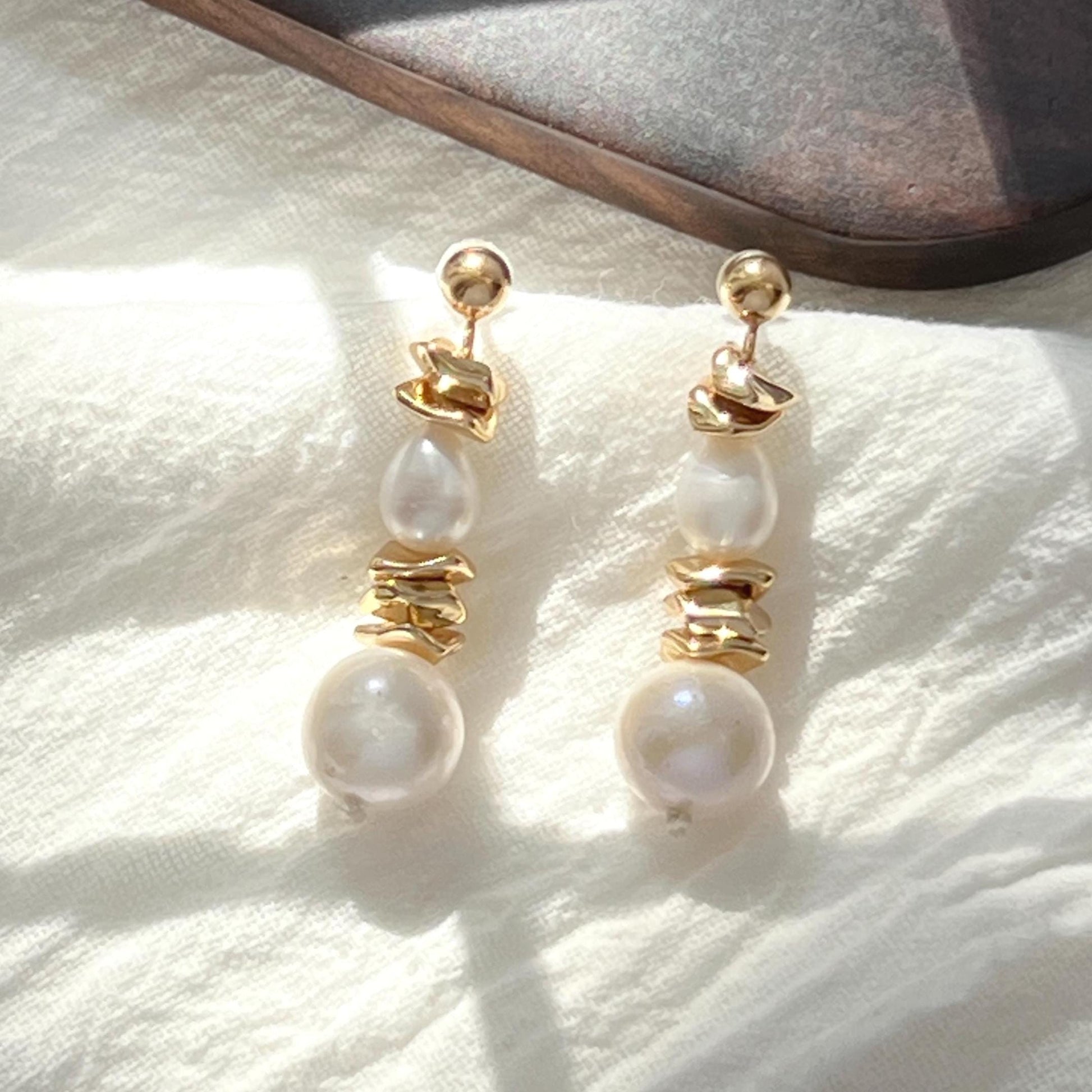 Baroque Pearl Golden Drop Earrings